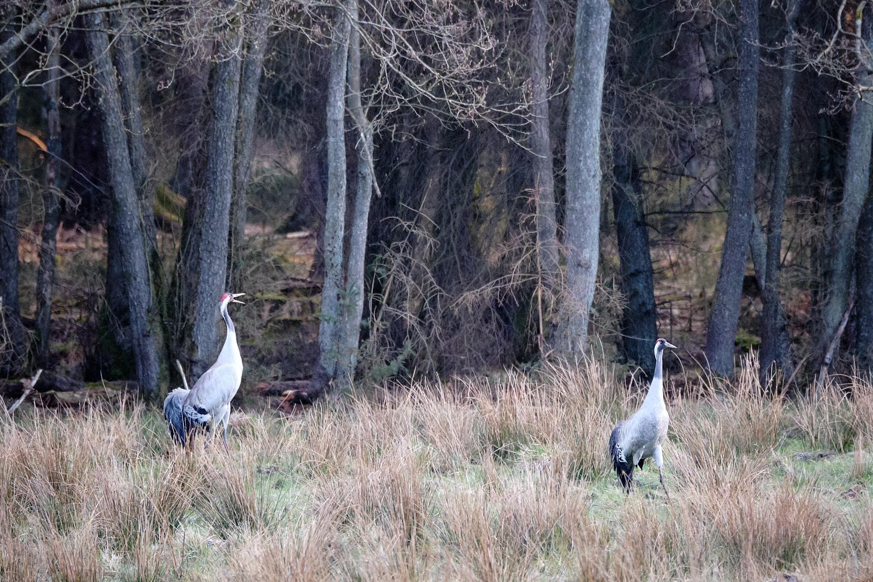 Kraniche im Sachsenwald sind nicht selten, aber sehr scheu. Absolute Ruhe und Geduld sind notwendig, diese schönen Großvögel ungestört beobachten zu dürfen.
